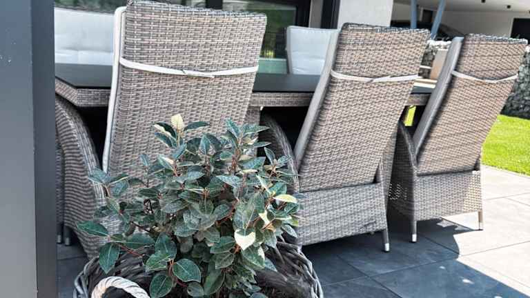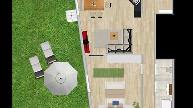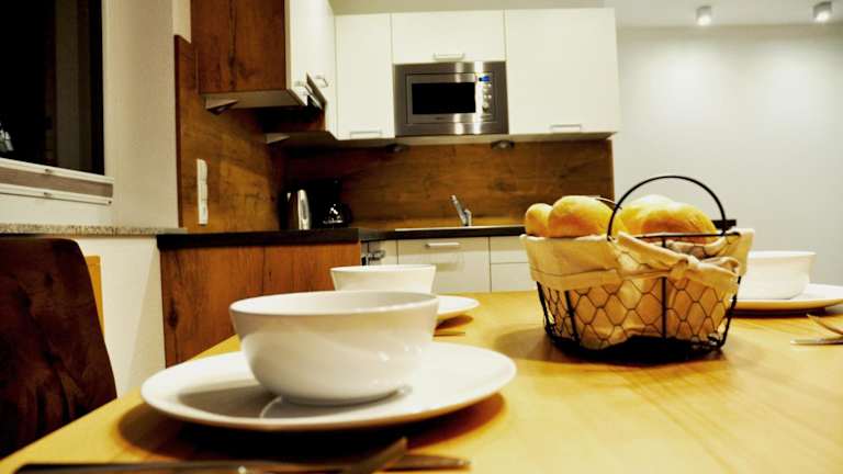 Die Ferienwohnung umfasst zwei Schlafzimmer, ein Wohnzimmer und eine gut ausgestattete Küche mit Kühlschrank und Geschirrspüler. Es stehen zwei Badezimmer mit Dusche zur Verfügung. Zur Ausstattung gehören auch ein Flachbild-TV sowie eine Terrasse mit Blick auf die Berge. Handtücher und Bettwäsche sind in der Ferienwohnung vorhanden.