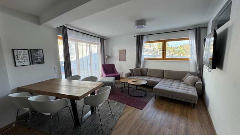 Die Ferienwohnung verfügt über eine Terrasse mit Bergblick, zwei Schlafzimmer, ein Wohnzimmer, einen Satelliten Flachbild-TV sowie eine gut ausgestattete Küche. Das Badezimmer ist mit einer Dusche und einer Badewanne ausgestattet. Handtücher und Bettwäsche werden zur Verfügung gestellt. Allergikerfreundliche Zimmer sind ebenfalls verfügbar.