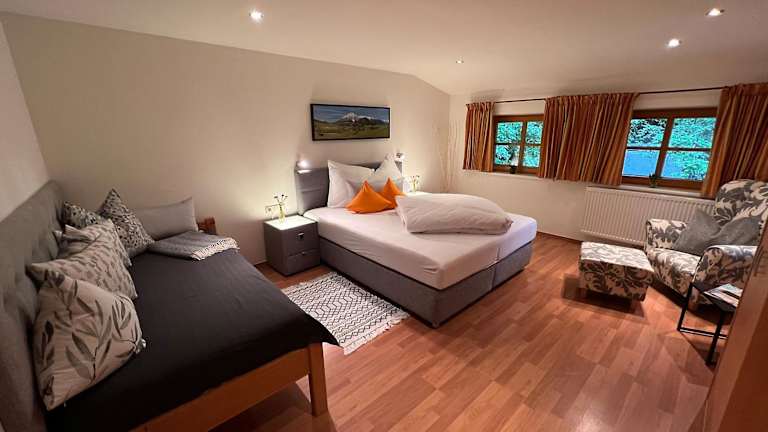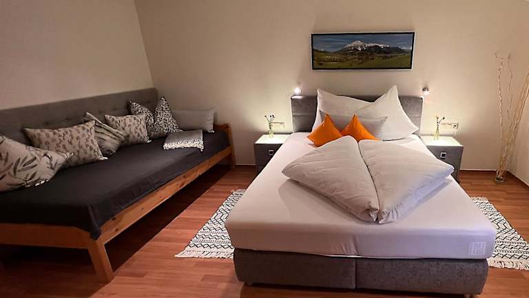 Das Appartement am Mühlrain bietet eine heimelige Ferienwohnung mit Blick auf die Berge. Zu den Annehmlichkeiten gehören ein Balkon, eine Terrasse sowie eine voll ausgestattete Küche. Die Übernachtungsmöglichkeiten sind geräumig und bieten Platz für bis zu drei Schlafzimmer und ein Badezimmer.