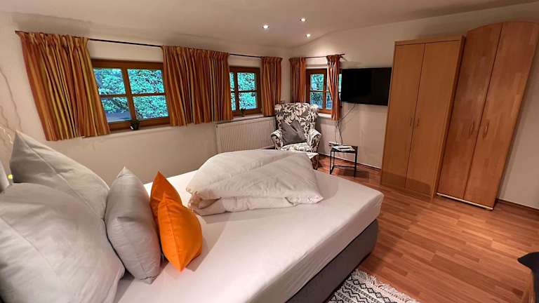 Die Unterkunft Appartement am Mühlrain befindet sich in einer malerischen Umgebung mit Blick auf die Berge. Die Nähe zu Freizeitmöglichkeiten wie Wandern und Skifahren erhöht die Attraktivität dieser Lage. Der Flughafen Salzburg ist in etwa 65 km erreichbar, während das Casino Kitzbühel nur 48 km entfernt liegt.