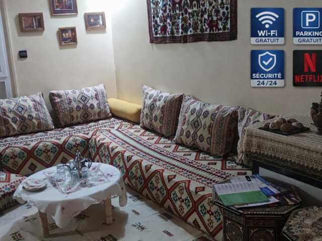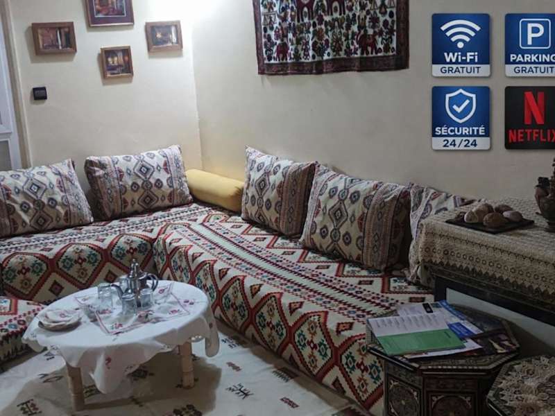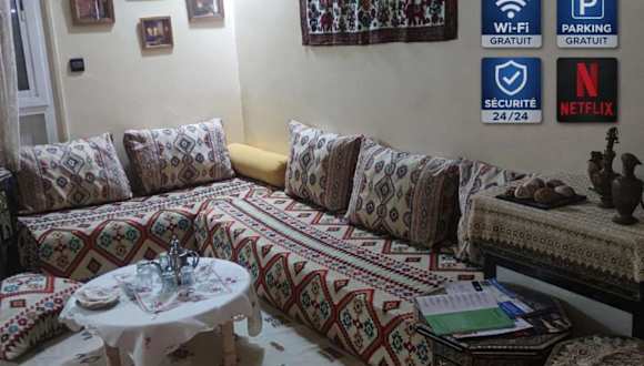 Das Appartement au centre Agadir résidence privée ist eine privat geführte Ferienwohnung, die in einem ruhigen Wohnumfeld liegt. Es bietet einen kostenlosen Privatparkplatz sowie eine rund um die Uhr besetzte Rezeption, um den Gästen einen hohen Grad an Bequemlichkeit zu gewährleisten. Weitere Annehmlichkeiten sind ein Nichtraucherzimmer und Sicherheitsmassnahmen wie Videoüberwachung und Feuerlöscher.