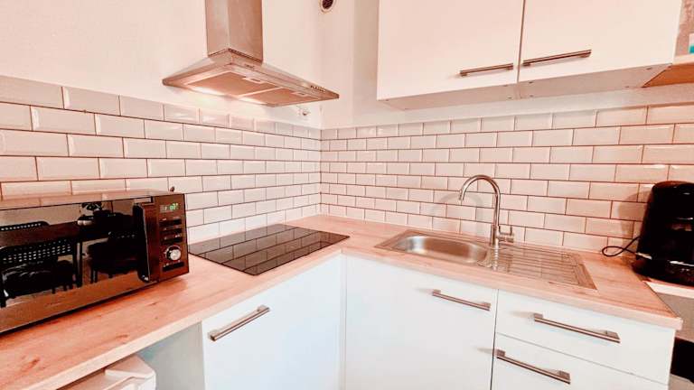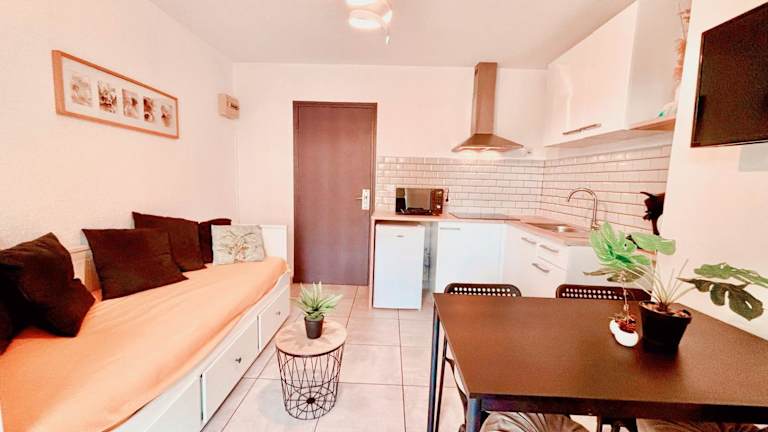 Das Appartement umfasst ein Schlafzimmer, ein Wohnzimmer und eine voll ausgestattete Küche mit Kühlschrank und Kaffeemaschine. Zudem gibt es ein Badezimmer mit Dusche und Haartrockner. Ein Flachbild-TV ist ebenfalls vorhanden. Bitte beachten Sie, dass Bettwäsche und Handtücher nicht automatisch bereitgestellt werden.