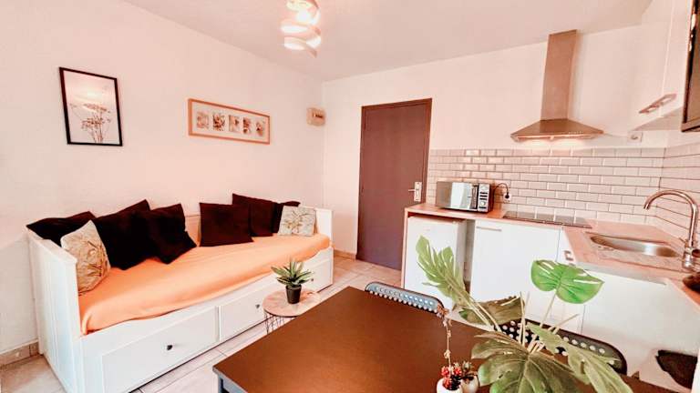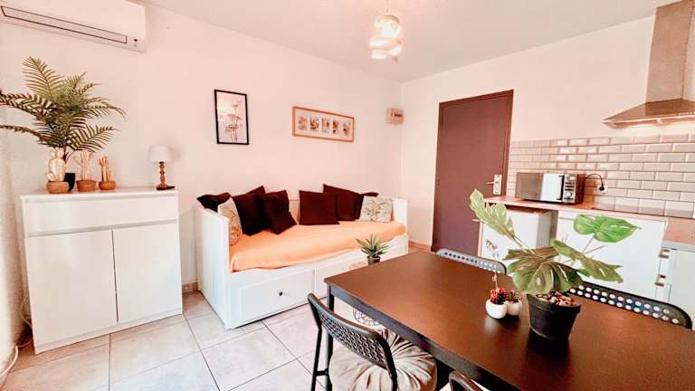 Die Unterkunft Appartement calme avec jardin privatif - 3 - befindet sich in Canet-en-Roussillon, 500 Meter vom Strand Plage Sud entfernt. Der nächste Flughafen ist der Flughafen Perpignan, welcher nur 26 Kilometer von der Unterkunft entfernt liegt.