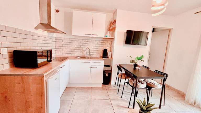 Das Appartement calme avec jardin privatif - 3 - bietet einen eigenen Garten mit schönem Gartenblick. Es handelt sich um eine Nichtraucherunterkunft, wo sowohl öffentliche als auch private Bereiche rauchfrei sind. Der Check-in kann kontaktlos erfolgen.