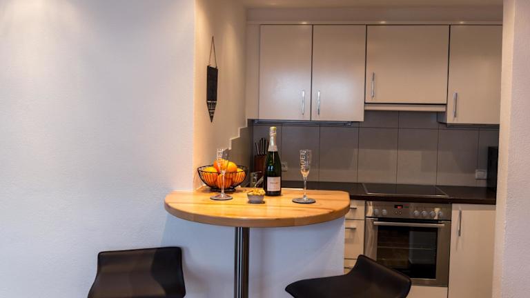 Die Ferienwohnung verfügt über ein gut ausgestattetes Wohnzimmer mit Flachbild-TV, eine Küche mit Kühlschrank und Geschirrspüler sowie ein Badezimmer mit Dusche. Handtücher und Bettwäsche sind ebenfalls vorhanden. Die Unterkunft ist auch mit schallisolierten Zimmern ausgestattet.