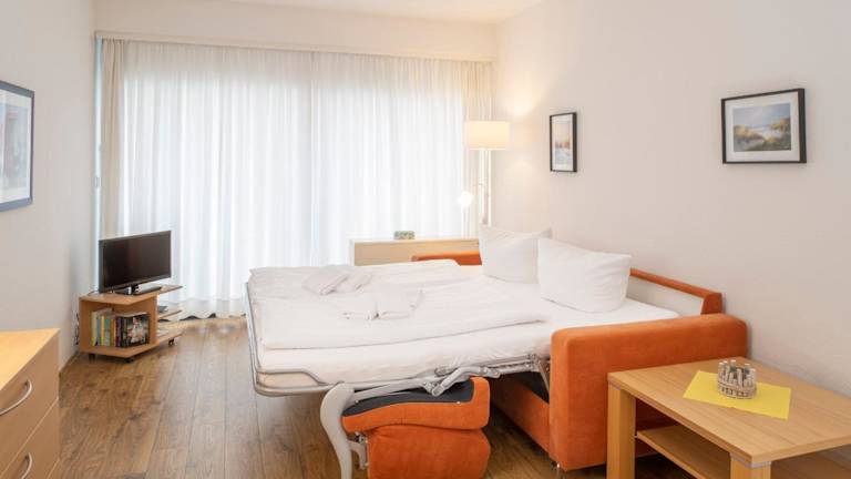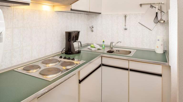 Die Ferienwohnung umfasst ein Schlafzimmer, eine gut ausgestattete Küche mit Kühlschrank und Ofen sowie ein Badezimmer mit Dusche, Haartrockner und Waschmaschine. Handtücher und Bettwäsche werden zur Verfügung gestellt.