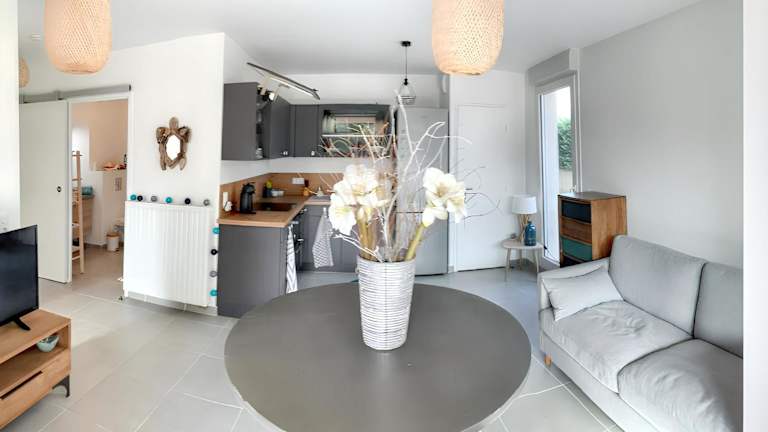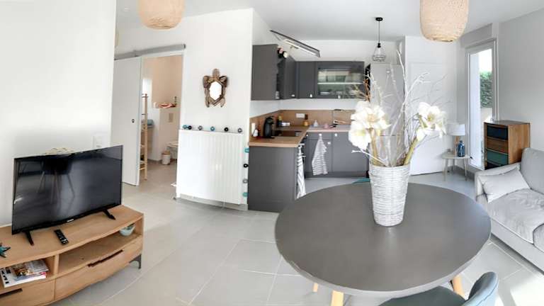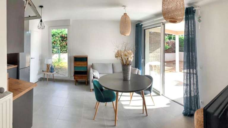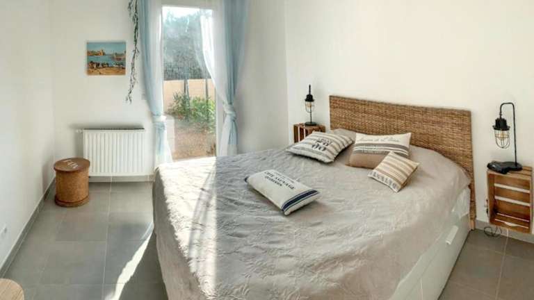 Die Unterkunft befindet sich in Six-Fours-les-Plages, in der Nähe mehrerer Strände, darunter der Strand Plage Antoine Baptiste (1,8 km entfernt) und der Strand Plage des Roches Brunes (1,2 km entfernt). Auch der Bahnhof Toulon liegt 12 km entfernt. Die Umgebung bietet eine ruhige Atmosphäre mit Blick auf einen heimeligen Garten.