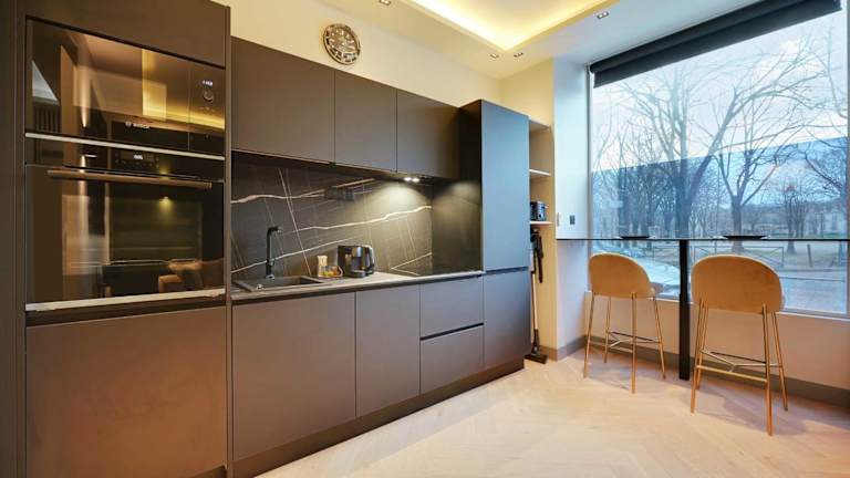 Die Ferienwohnung besteht aus einem Schlafzimmer, einem Wohnzimmer und einer voll ausgestatteten Küche mit Kühlschrank und Kaffeemaschine. Zudem verfügt sie über ein Badezimmer mit Dusche und kostenlosen Pflegeprodukten. Handtücher und Bettwäsche werden bereitgestellt.