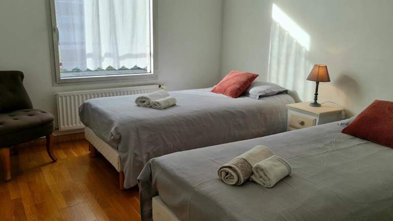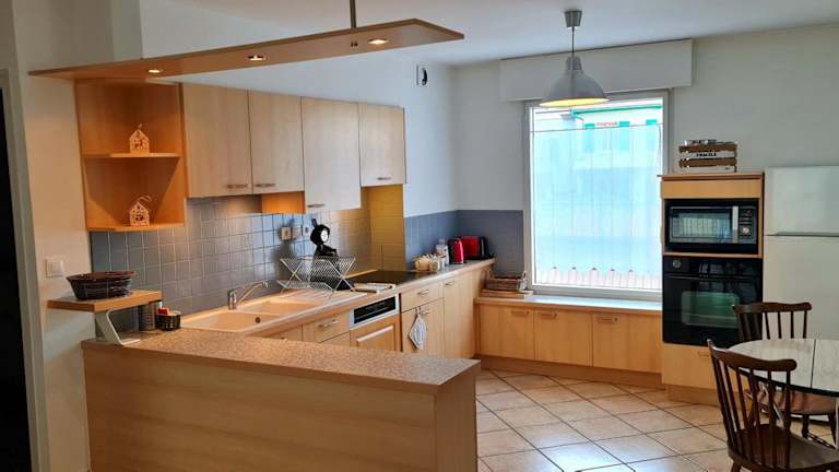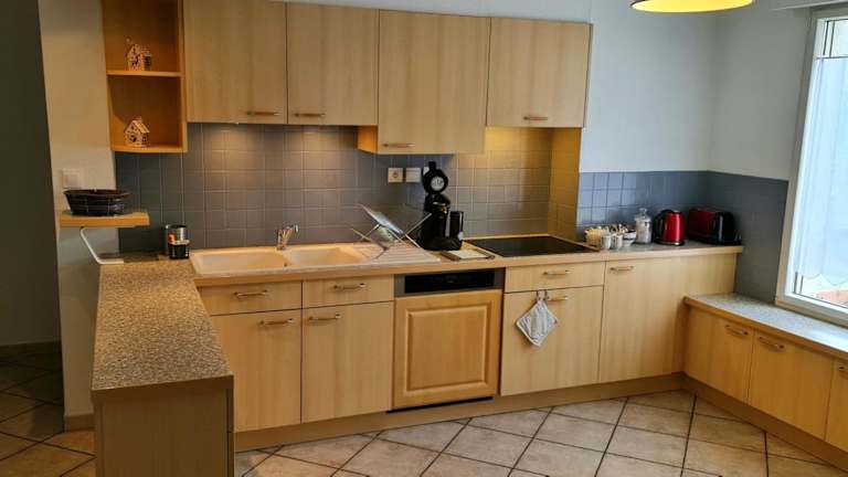 Die Ferienwohnung umfasst 2 Schlafzimmer, ein Wohnzimmer mit Flachbild-TV und eine gut ausgestattete Küche mit Kühlschrank und Geschirrspüler. Das Badezimmer ist mit einer Dusche ausgestattet. Handtücher und Bettwäsche werden bereitgestellt.