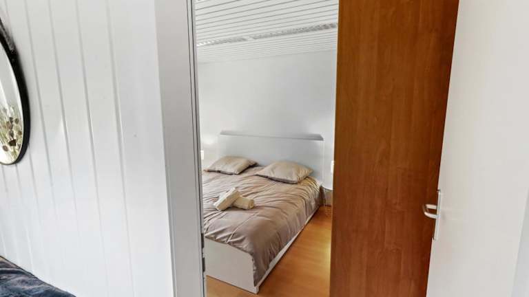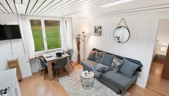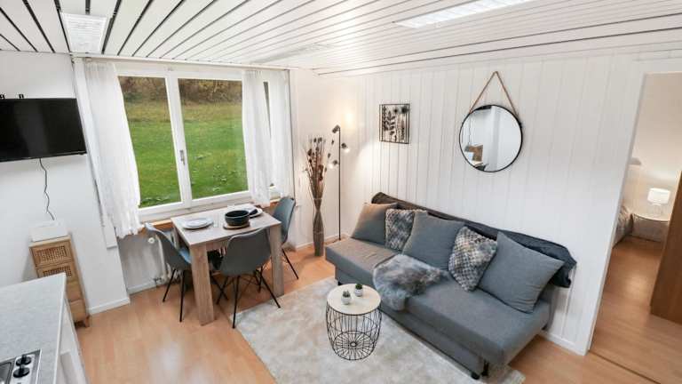 Die Ferienwohnung besteht aus einem Schlafzimmer, einem Wohnzimmer und einer voll ausgestatteten Küche, die einen Kühlschrank und eine Kaffeemaschine beinhaltet. Das Badezimmer ist mit einer Dusche und kostenlosen Pflegeprodukten ausgestattet. Handtücher und Bettwäsche werden zur Verfügung gestellt.
