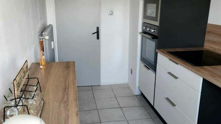 Die Ferienwohnung verfügt über eine voll ausgestattete Küche, die es den Gästen ermöglicht, ihre eigenen Mahlzeiten zuzubereiten. Eine Kaffeemaschine steht ebenfalls zur Verfügung.