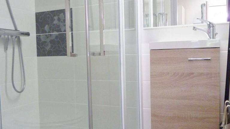 Die Ferienwohnung umfasst 3 separate Schlafzimmer, eine voll ausgestattete Küche mit Kühlschrank und Geschirrspüler sowie ein Badezimmer mit Dusche. Ein TV ist ebenfalls vorhanden. Die Unterkunft bietet Klimaanlage und Blick auf den Garten.