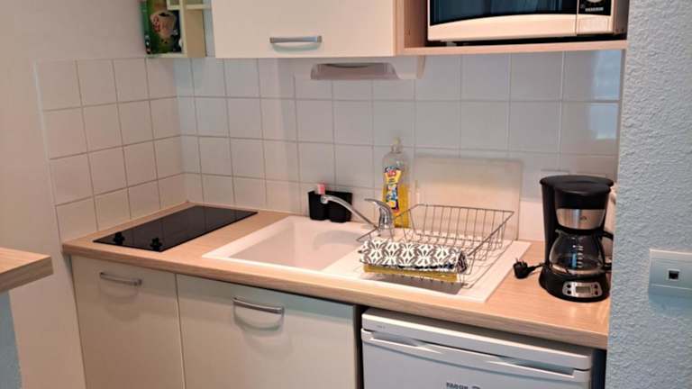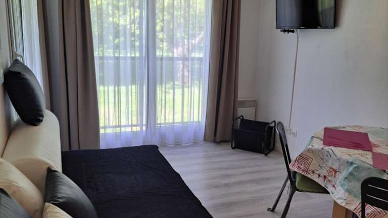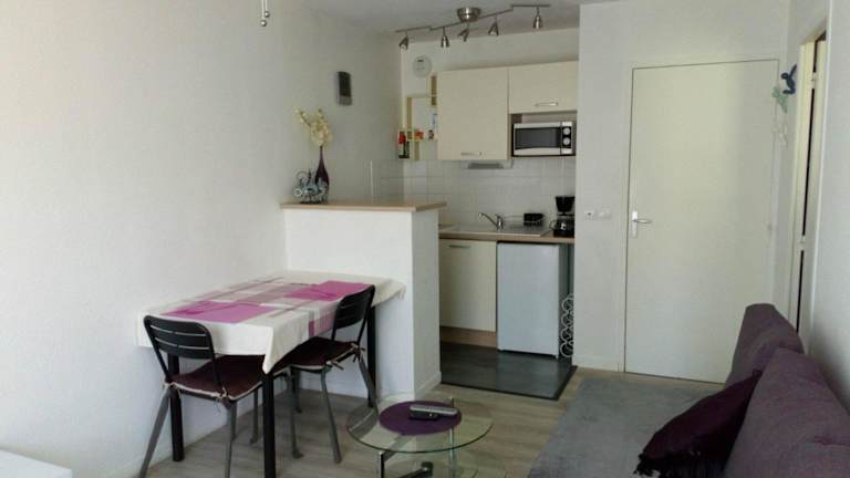 Das Appartement de 30m2 in der Résidence bietet ein Wohnzimmer mit einem Flachbild-TV und Zugang zu einer Terrasse. Den Gästen steht ein Garten mit Innenpool zur Verfügung.