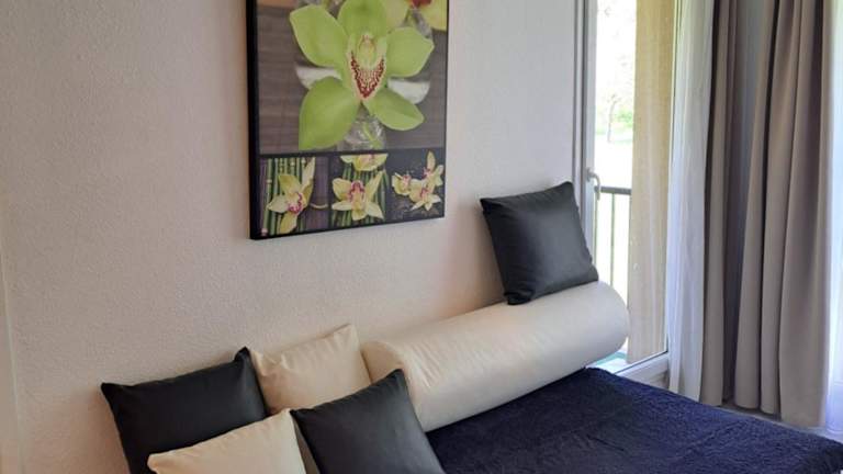 Das Appartement verfügt über ein Schlafzimmer und ein Badezimmer mit Dusche, Badewanne und Haartrockner. Die Unterkunft bietet zudem Parkettböden und Gartenblick. Für zusätzlichen Komfort können Handtücher und Bettwäsche gegen Aufpreis bereitgestellt werden.