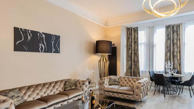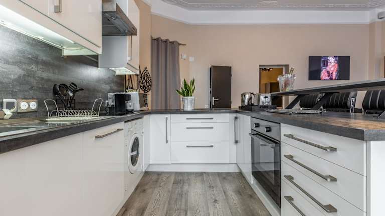 Das Appartement umfasst ein Schlafzimmer, ein Wohnzimmer und eine gut ausgestattete Küche. Das Badezimmer verfügt über eine Badewanne oder Dusche sowie einen Whirlpool. Zu den Annehmlichkeiten gehören ein Satelliten-Flachbild-TV sowie Handtücher und Bettwäsche, die zur Verfügung gestellt werden.