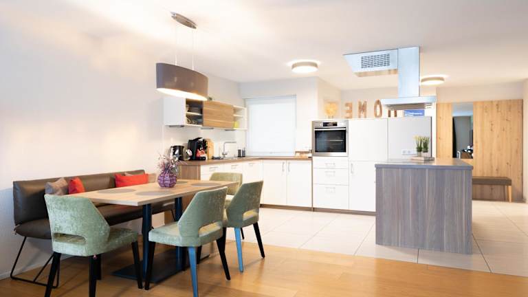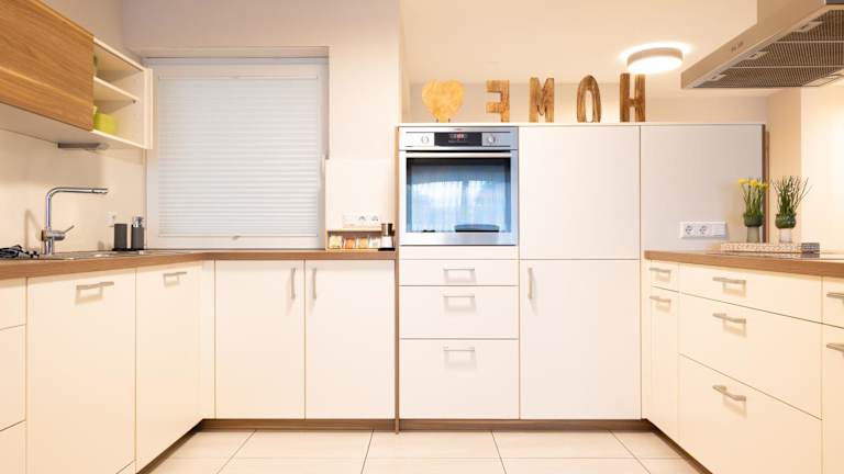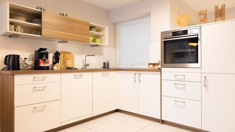 Die Ferienwohnung verfügt über eine gut ausgestattete Küche mit einem Kühlschrank und einem Ofen, ideal für Selbstversorger. Es werden zudem Grillmöglichkeiten angeboten.