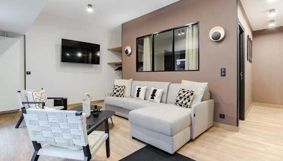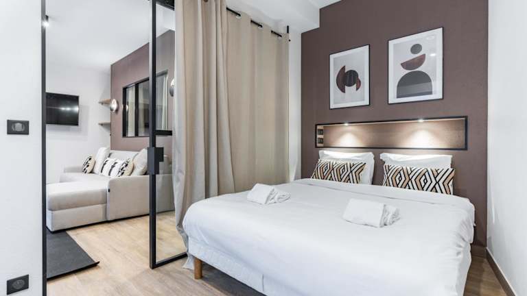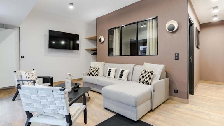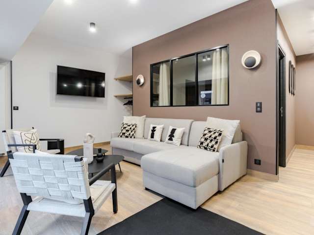 Die Ferienwohnung Appartement Design en Duplex 2BR à Oberkampf bietet eine moderne und stilvolle Gestaltung und besteht aus zwei Schlafzimmern sowie einem Wohnzimmer mit einem Flachbild-TV. Es handelt sich um eine Nichtraucherunterkunft, die durch Sicherheits- und Hygienevorkehrungen ausgezeichnet ist.