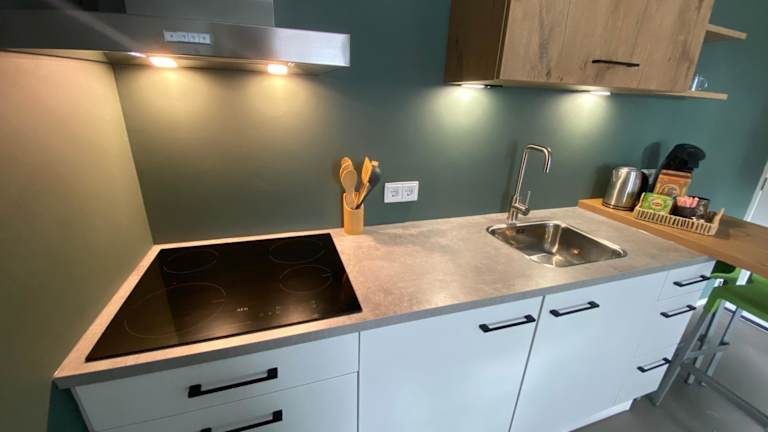Die Ferienwohnung ist mit 1 Schlafzimmer, 1 Badezimmer, Bettwäsche, Handtüchern, einem Flachbild-TV, einem Essbereich und einer voll ausgestatteten Küche eingerichtet.