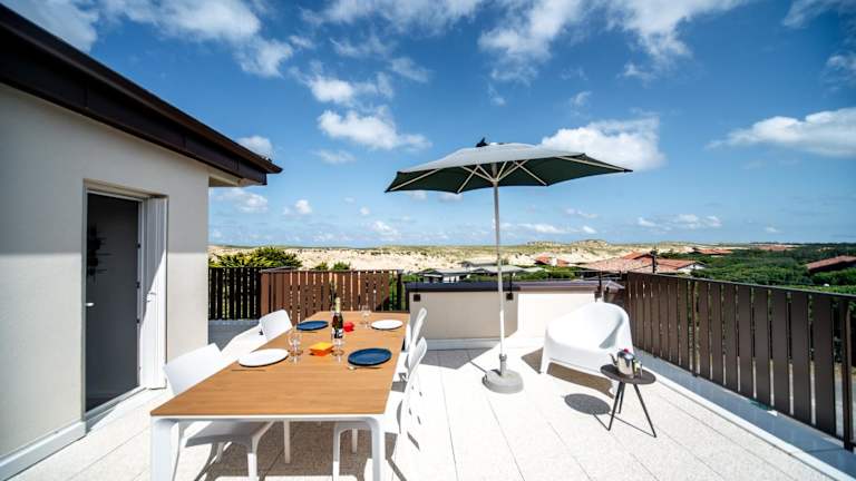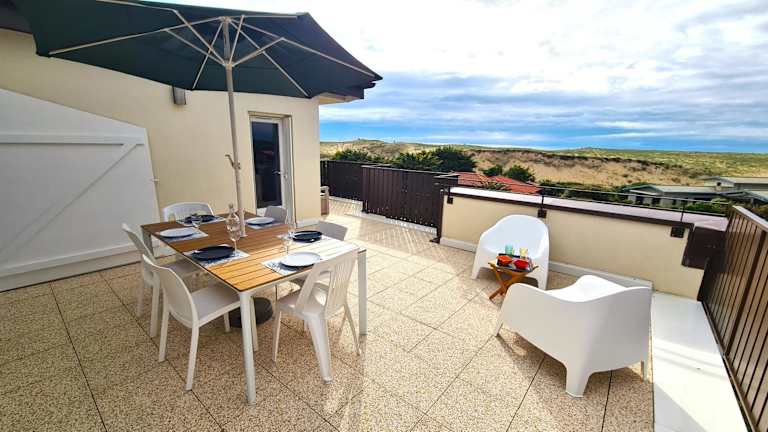 Appartement duplex 5 personnes, vue sur la dune #0295 in der Résidence San Michele bietet eine heimelige Unterkunft mit Balkon und kostenlosem Wifi. In der Unterkunft sind weder Junggesellen-/Junggesellinnenabschiede noch ähnliche Feiern erlaubt.