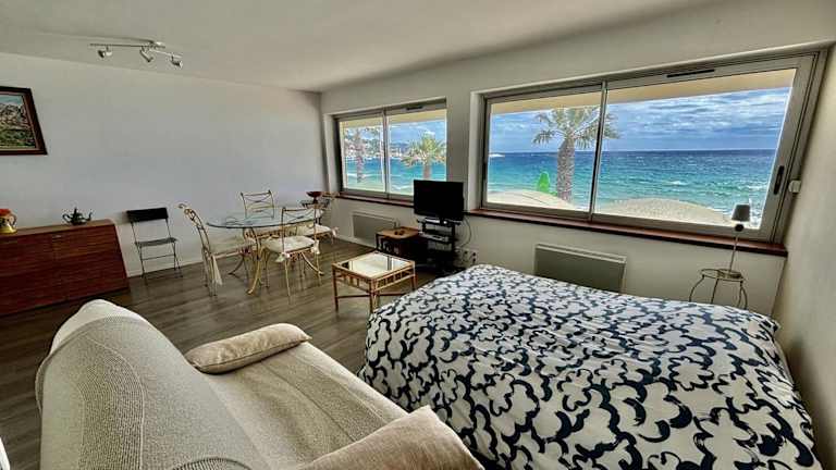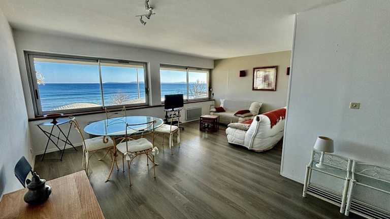 Das Appartement en front de mer au Lavandou bietet einen schönen Meerblick und befindet sich in einer ruhigen Umgebung. Es handelt sich um eine Nichtraucherunterkunft, die spezielle Reinigungsstandards einhält und zwischen den Aufenthalten desinfiziert wird. Die Unterkunft ist ideal für Ferien in direkter Strandnähe.