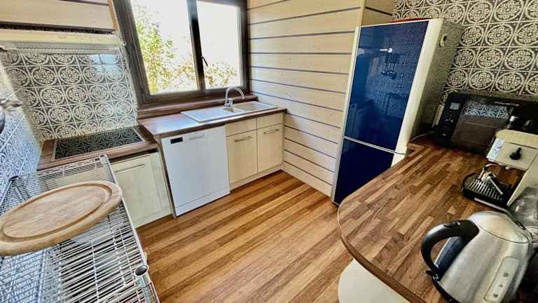 Die Ferienwohnung verfügt über ein Schlafzimmer sowie ein Badezimmer mit Dusche. Zur Ausstattung gehören ein TV, eine gut ausgestattete Küche mit Kühlschrank und Geschirrspüler, die den Gästen eine angenehme Selbstverpflegung ermöglichen.