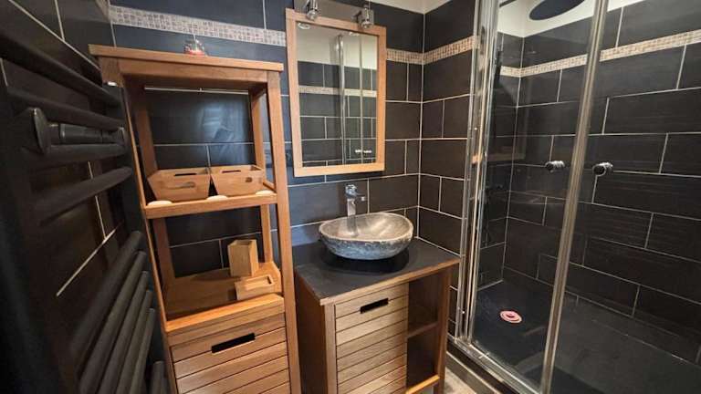 Die Ferienwohnung Appartement en rez-de-jardin avec terrasse privative bietet Übernachtungsmöglichkeiten mit Annehmlichkeiten wie kostenlosem Wifi und einem Flachbild-TV. Sie verfügt über eine Klimaanlage und einen direkten Zugang zu einer eigenen Terrasse.
