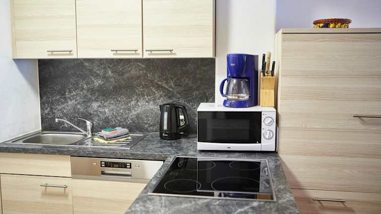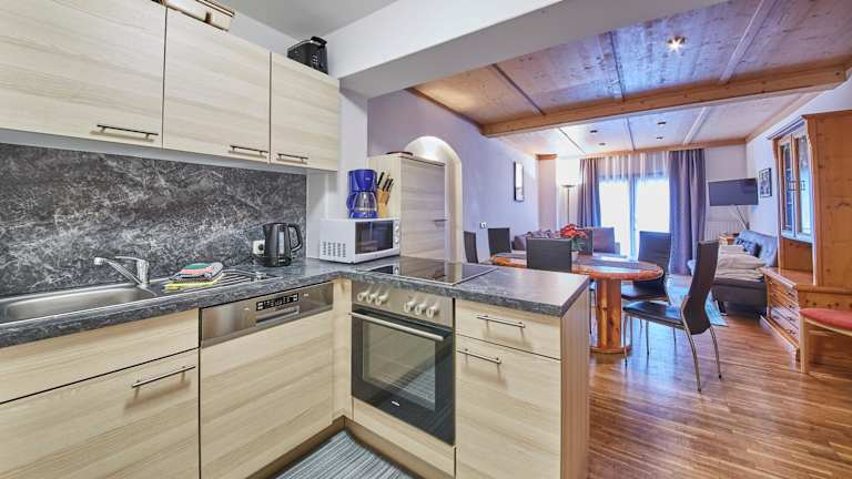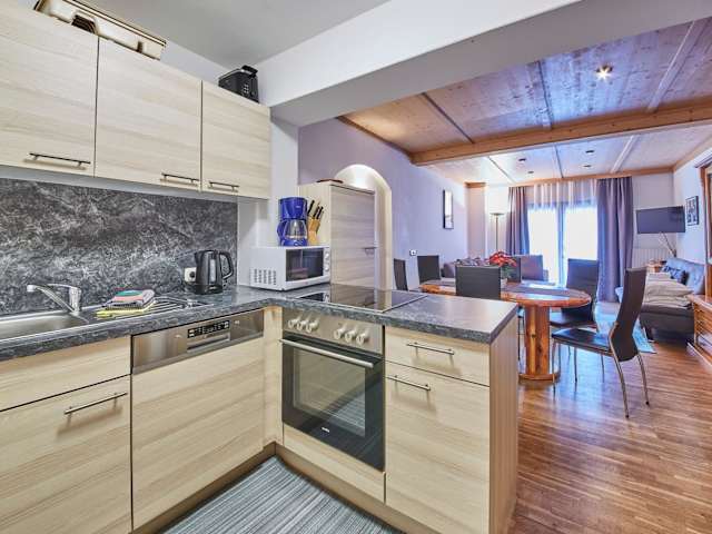 Die Ferienwohnung verfügt über 2 Schlafzimmer, ein Wohnzimmer mit Flachbild-TV und eine gut ausgestattete Küche, die mit einem Kühlschrank und einem Geschirrspüler ausgestattet ist. Das Badezimmer ist mit einer Dusche eingerichtet. Handtücher und Bettwäsche werden ebenfalls zur Verfügung gestellt. Zudem gibt es eine Terrasse mit Blick auf die Berge.