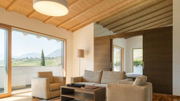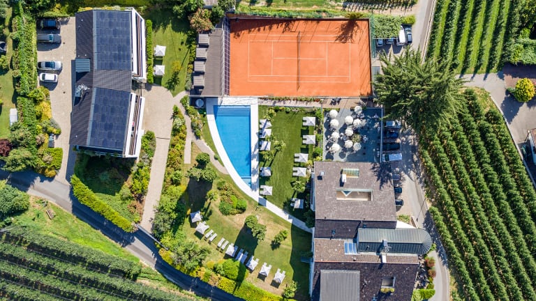 Krone Living ist ein Rückzugsort für alle, die das Unkomplizierte schätzen und das Wesentliche suchen. Die Appartements sind großzügig geschnitten, lichtdurchflutet und mit natürlichen Materialien ausgestattet – reduziert im Design, durchdacht im Detail. Der Garten ringsum ist weitläufig, mediterran bepflanzt und terrassiert – mit Liegewiesen, Palmen und viel Platz zum Durchatmen. Ein beheizter Pool, eine Panorama-Lounge mit Ausblick und kleine Ruheinseln machen das Draußensein besonders. Wer mag, spielt Tennis, nutzt den Fitnessraum oder entspannt im Saunabereich. Und wer einfach nur daliegen will, darf das auch – ganz ohne Programm. Nur echt, leicht und stimmig