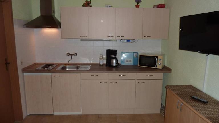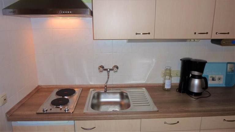 Im Appartement Links gibt es eine gut ausgestattete Küchenzeile mit Kühlschrank und Ofen, die zur Selbstverpflegung einlädt. Für Snacks und Getränke steht ein Getränkeautomat zur Verfügung, und die Umgebung bietet zusätzlich Möglichkeiten für gastronomische Erlebnisse.