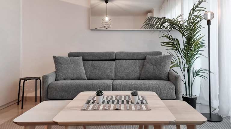 Die Ferienwohnung verfügt über ein Schlafzimmer, ein Wohnzimmer sowie eine voll ausgestattete Küche mit Kühlschrank und Kaffeemaschine. Ein Badezimmer mit Dusche und Haartrockner ist ebenfalls vorhanden. In der Unterkunft werden Handtücher und Bettwäsche zur Verfügung gestellt.