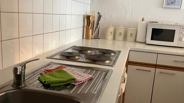 Die Ferienwohnung ist ausgestattet mit zwei Schlafzimmern, einer Küche, die über einen Kühlschrank und einen Geschirrspüler verfügt, einem Flachbild-TV, einem Sitzbereich und einem Badezimmer mit Badewanne oder Dusche. Auf Wunsch können Handtücher und Bettwäsche gegen Aufpreis bereitgestellt werden.