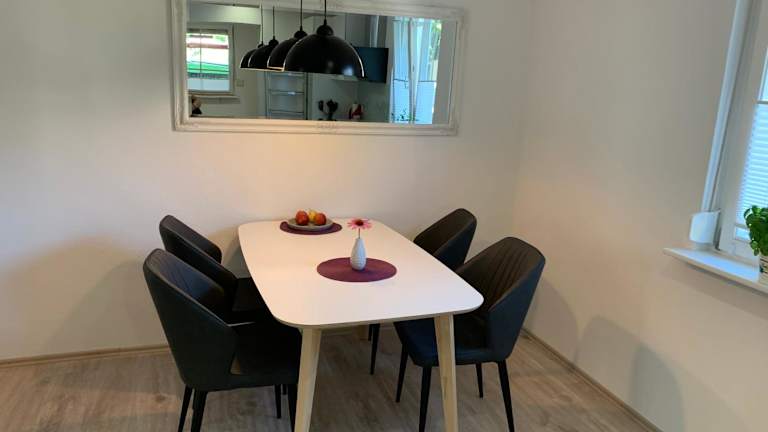 Die Ferienwohnung bietet zwei Schlafzimmer und ist ausgestattet mit einem Flachbild-TV mit Satellitenkanälen. Die voll ausgestattete Küche beinhaltet einen Kühlschrank, einen Geschirrspüler, eine Waschmaschine, einen Ofen und eine Herdplatte. Handtücher und Bettwäsche werden zur Verfügung gestellt.