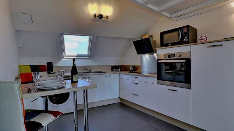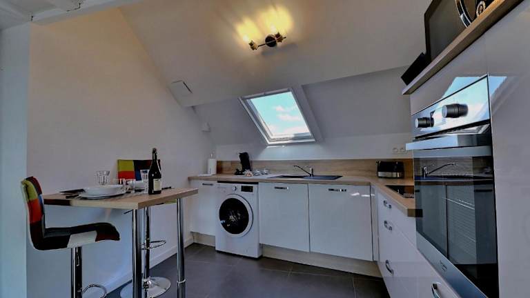 Die Ferienwohnung verfügt über 1 Schlafzimmer, eine Küche mit Kühlschrank und Geschirrspüler sowie ein Badezimmer mit Dusche, Haartrockner und Waschmaschine. Handtücher und Bettwäsche werden angeboten.