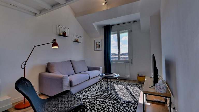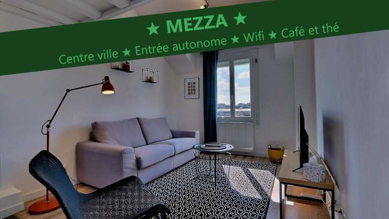 Das Appartement "MEZZA" centre ville de VITRÉ bietet Übernachtungsmöglichkeiten in einer heimeligen Ferienwohnung mit Stadtblick und Annehmlichkeiten wie kostenlosem Wifi und einem Flachbild-TV.