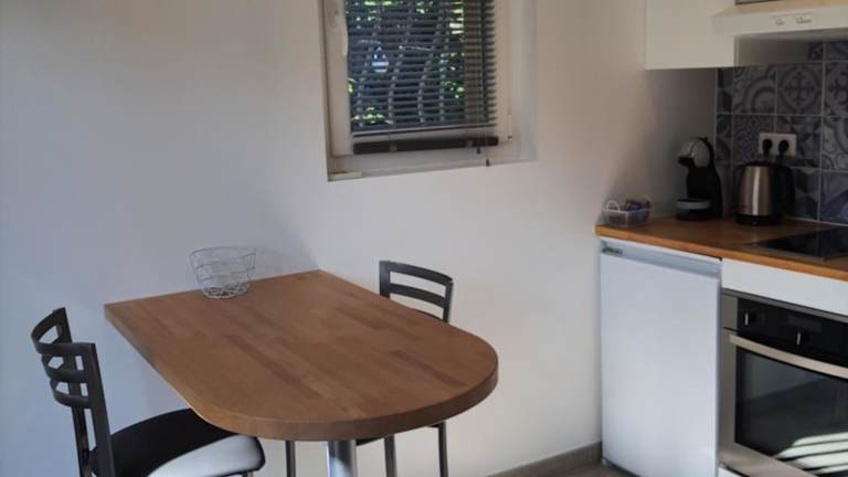 Die Ferienwohnung besteht aus einem Schlafzimmer und einem Badezimmer und ist vollständig eingerichtet. Zur Ausstattung gehören Bettwäsche, Handtücher, ein Flachbild-TV, ein Essbereich sowie eine voll ausgestattete Küche. Zusätzlich bietet die Terrasse einen Blick auf den Garten. WLAN ist in der Unterkunft kostenfrei verfügbar.