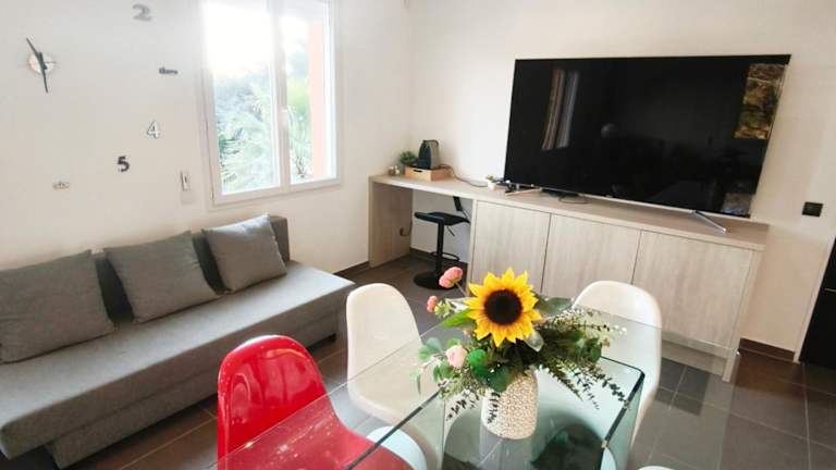 Die Unterkunft Appartement Pinede Man Yelle befindet sich in Sanary-sur-Mer, in einer Gegend mit vielfältigen Möglichkeiten zum Velo fahren und weiteren Aktivitäten. Die Strände La Plage Dorée und Plage du Grand Vallat liegen in einer Entfernung von 2,4 km bzw. 2,5 km. Der nächste Flughafen, Toulon-Hyères, liegt 37 km von der Unterkunft entfernt.