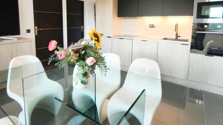 Das Appartement verfügt über ein Schlafzimmer, ein Wohnzimmer sowie eine voll ausgestattete Küchenzeile mit Kühlschrank und Kaffeemaschine. Das Badezimmer ist mit einer Dusche und einem Haartrockner ausgestattet. Handtücher und Bettwäsche werden bereitgestellt. Die Unterkunft ist klimatisiert und verfügt über schallisolierte Zimmer.