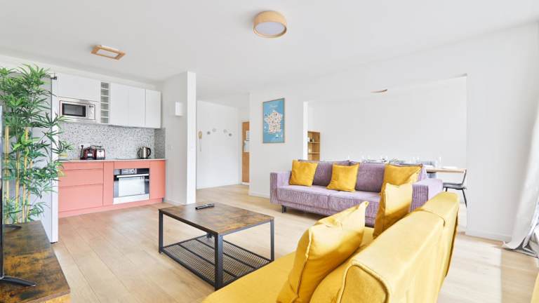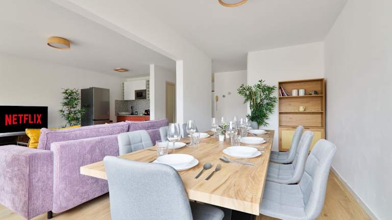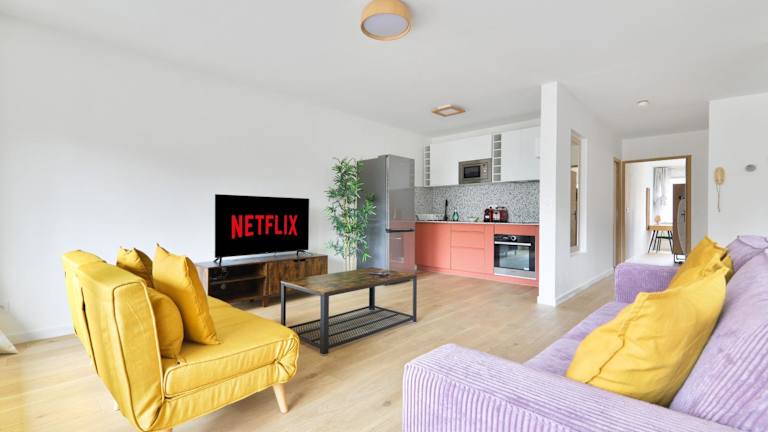 Die Ferienwohnung besteht aus 2 Schlafzimmern, einem Wohnzimmer, einer voll ausgestatteten Küche mit Kühlschrank und Kaffeemaschine sowie 2 Badezimmern mit Dusche und kostenlosen Pflegeprodukten. Handtücher und Bettwäsche werden zur Verfügung gestellt.