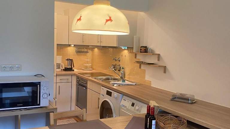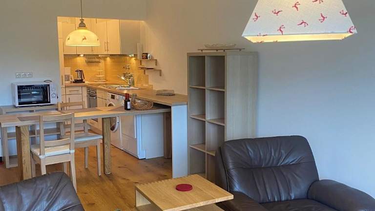 Die Ferienwohnung verfügt über ein Wohnzimmer sowie eine voll ausgestattete Küchenzeile inklusive Kühlschrank und Toaster. Handtücher und Bettwäsche werden bereitgestellt, um den Gästen einen angenehmen Aufenthalt zu garantieren. Haustiere sind gestattet, es können jedoch Gebühren anfallen.