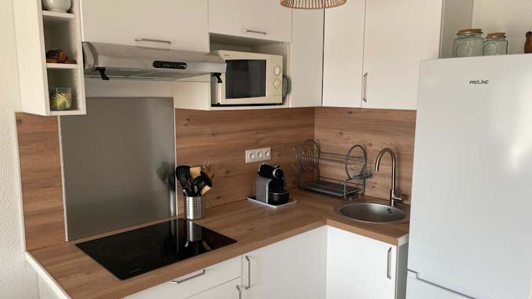 Das Appartement ist eine renovierte Ferienwohnung, die Platz für bis zu 4 Personen bietet. Sie zeichnet sich durch eine große Terrasse aus. Ein kostenloser Privatparkplatz steht vor Ort zur Verfügung. Besondere Anfragen können bei der Buchung geäußert werden.