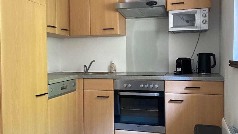 Die Ferienwohnung verfügt über 2 Schlafzimmer, ein Wohnzimmer mit Flachbild-TV, eine gut ausgestattete Küche mit Kühlschrank und Geschirrspüler sowie ein Badezimmer mit Dusche. Eine Terrasse mit Bergblick lädt zum Entspannen ein. Handtücher und Bettwäsche werden bereitgestellt.