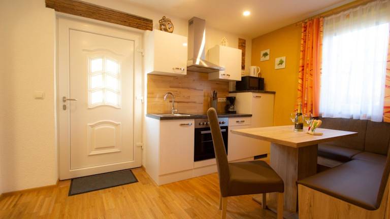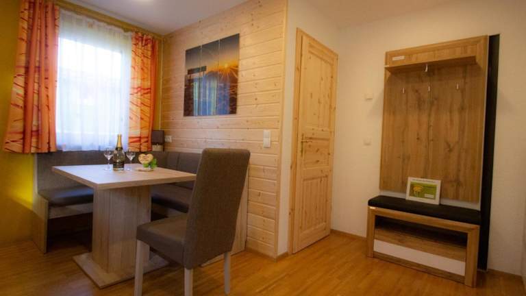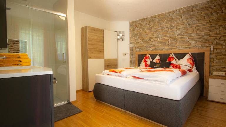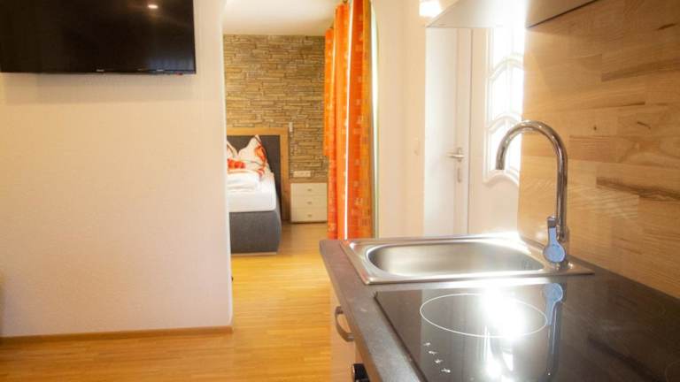 Die Ferienwohnung besteht aus einem Schlafzimmer und einem Badezimmer. Ausgestattet ist sie mit Bettwäsche, Handtüchern, einem Flachbild-TV mit Satellitenkanälen und einem Essbereich. Zudem gibt es eine Terrasse mit Blick auf die Berge, die zum Entspannen einlädt.