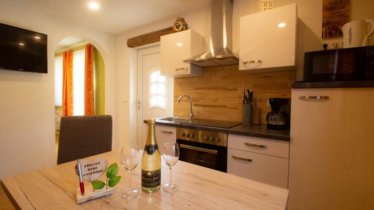 Das Appartement bietet eine voll ausgestattete Küche, die es Gästen ermöglicht, ihre eigenen Mahlzeiten zuzubereiten. Zudem steht im Restaurant eine Auswahl an Speisen zur Verfügung, um den Gästen ein kulinarisches Erlebnis zu bieten.