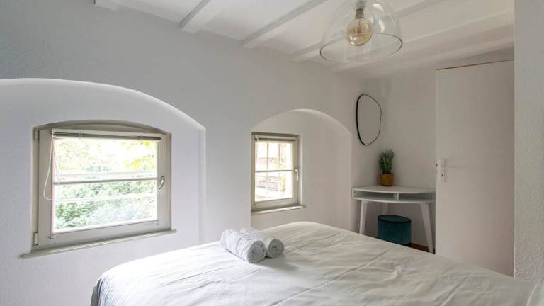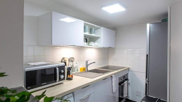 Die Ferienwohnung ist ausgestattet mit 2 Schlafzimmern, einer Küche mit Kühlschrank und Geschirrspüler sowie einem Flachbild-TV und einem Sitzbereich. Ein Badezimmer mit Dusche ist ebenfalls vorhanden.