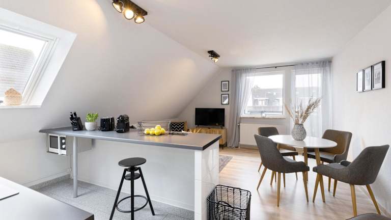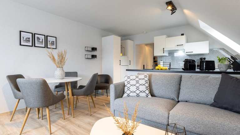 Die Ferienwohnung verfügt über 2 Schlafzimmer und eine gut ausgestattete Küchenzeile, die mit einem Kühlschrank, einem Geschirrspüler und einer Kaffeemaschine ausgestattet ist. Nichtraucherzimmer sind vorhanden.
