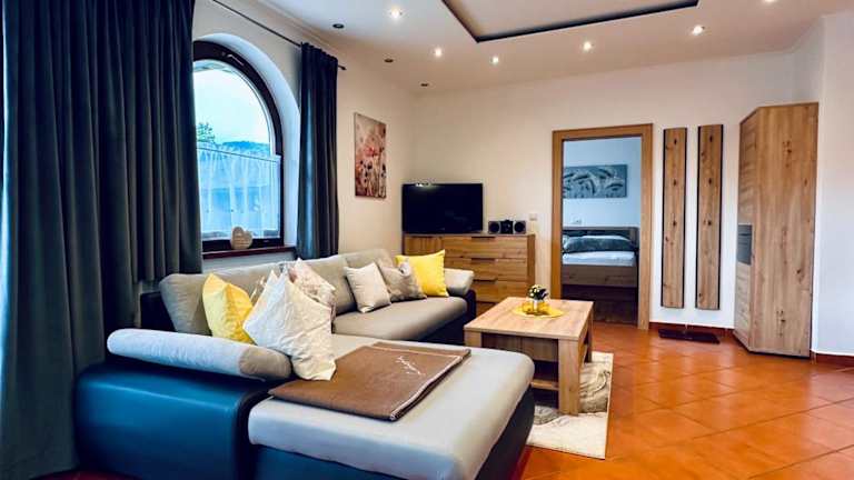 Die Ferienwohnung in Appartement Treffhour bietet ein Schlafzimmer, ein Wohnzimmer sowie eine gut ausgestattete Küche mit Kühlschrank und Geschirrspüler. Zudem verfügt sie über ein Badezimmer mit Dusche. Ein Flachbild-TV sorgt für Unterhaltung. Handtücher und Bettwäsche sind ebenfalls vorhanden.