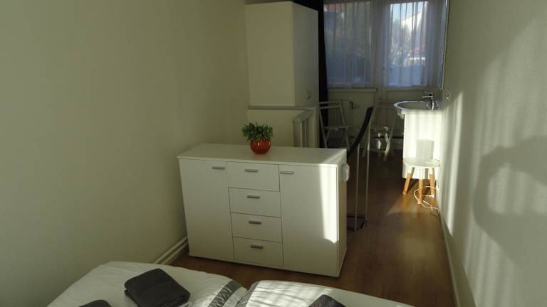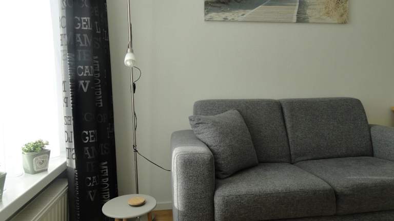 Die Ferienwohnung verfügt über ein Schlafzimmer, eine Küche, die mit einem Kühlschrank und einem Geschirrspüler ausgestattet ist, sowie einem Flachbild-TV, einem gemütlichen Sitzbereich und einem Badezimmer mit Dusche. Handtücher und Bettwäsche werden zur Verfügung gestellt. Zusätzlich ist eine Terrasse vorhanden.