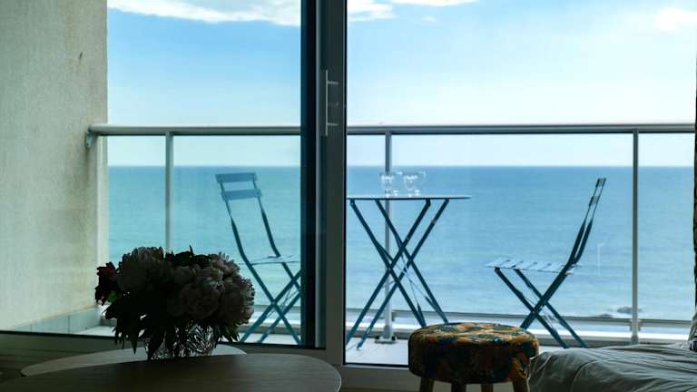Die Ferienwohnung Appartement vue imprenable sur la baie des Sables eignet sich ideal für 4 Personen und bietet eine heimelige Atmosphäre mit Balkon und Meerblick. Die Unterkunft bietet kostenloses Wifi in der gesamten Wohnung.