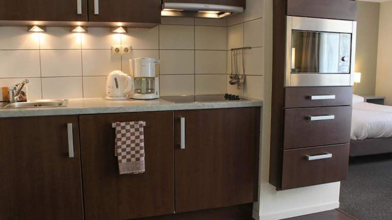 Die Wohneinheiten beinhalten eine Küchenzeile, die unter anderem mit einem Kühlschrank, einem Geschirrspüler und einem Ofen ausgestattet ist. Einige Einheiten verfügen über zusätzliche Annehmlichkeiten für einen angenehmen Aufenthalt. Der Gemeinschaftsbereich lädt zum Entspannen ein.