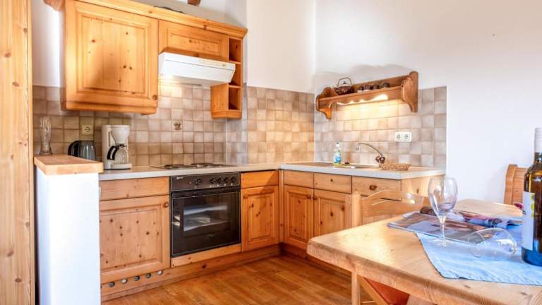 Die Ferienwohnung umfasst ein Schlafzimmer, eine gut ausgestattete Küche mit Kühlschrank und Ofen, einen Fernseher sowie einen bequemen Sitzbereich. Zudem stehen den Gästen zwei Badezimmer mit Dusche sowie Handtücher und Bettwäsche zur Verfügung.